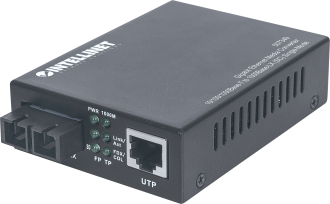 Media converter 10/100/1000Base-TX to 1000Base-FX.